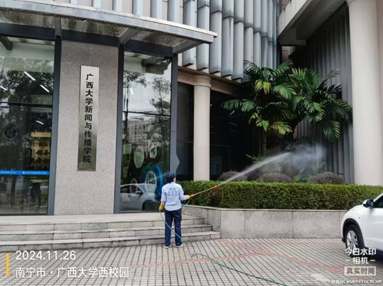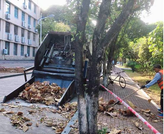 垃圾清运:按规定时间路线清运校园垃圾,做到垃圾日产日清,并对垃圾桶和垃圾箱进行清洗和消杀。本周清运的生活垃圾453.5吨,大件垃圾10.9吨,绿化垃圾181立方米。