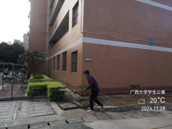 为保持良好的校园卫生环境,病媒生物防制板块于11月22日—12月3日对东、西校园和行健文理学院的教学办公区、教职工住宅区、学生公寓区等外环境实施新一轮灭鼠杀虫、白蚁、红火蚁等病媒生物防治工作,历时两周时间。防制范围包括所有的教学楼、办公楼、教职工住宅楼、食堂、农贸市场、医院、科研基地、仓库等外环境以及校园的主次干道的下水道口、公厕、垃圾桶(箱)、绿化带、雨水沟等,实际有害生物防制面积约136万㎡。其中绿地约30多万㎡,下水道、化粪池及各类地井约3500个、小型污积水体约1万㎡,防制的主要内容包括对上述区域外环境的鼠、蚊、蝇、蟑螂等病媒生物及红火蚁、白蚁进行有效防制。