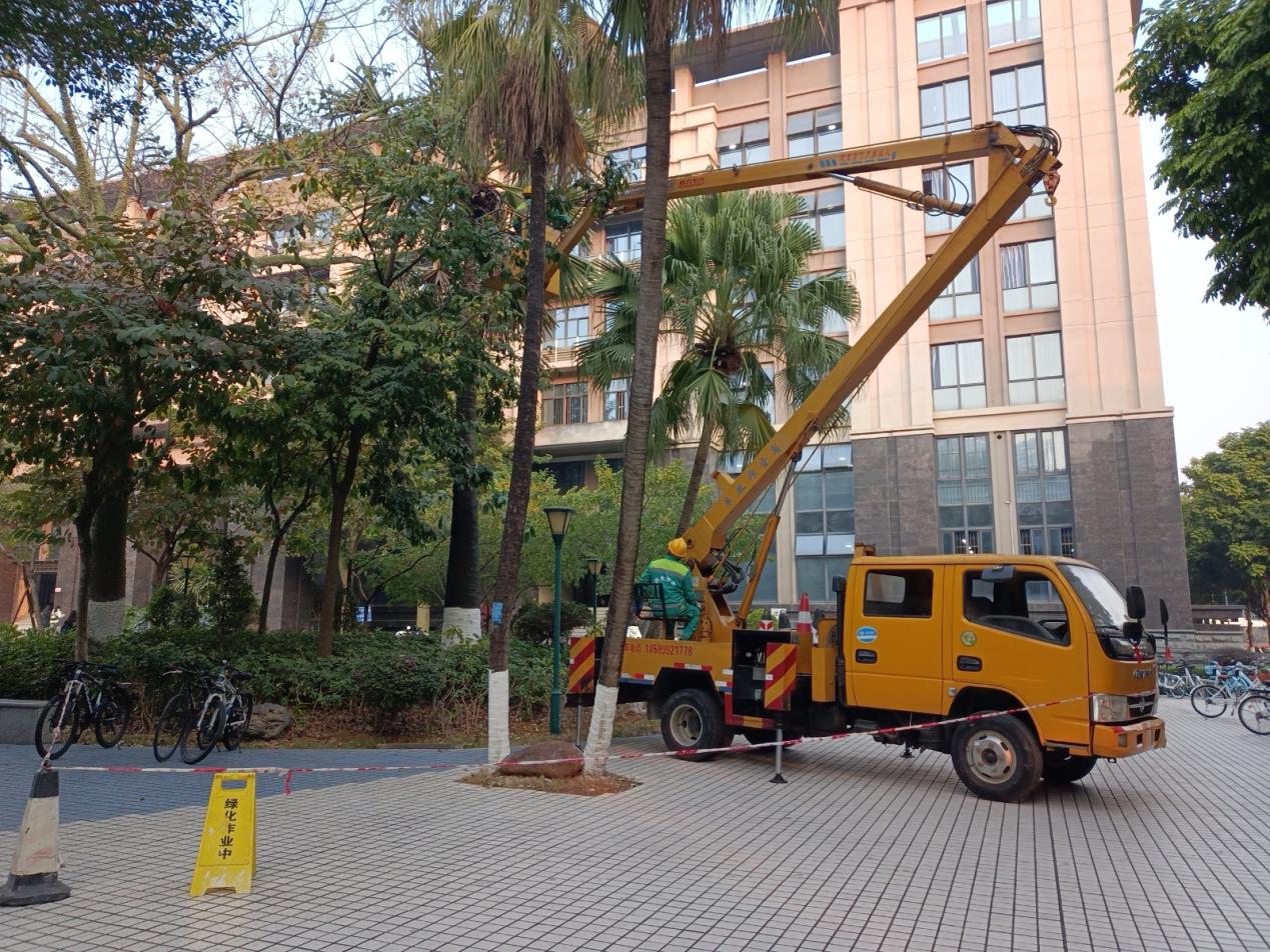 树木修剪:劝学岛、东校园中区33-45栋,东校园东区17栋、学生公寓6A栋、机械学院、西校园中区7栋、西校园北区假植地、西门、马克思主义学院、西校园北区5-7栋、西校园北区14栋、春华湖、荷湖、博萃路、崇文路、食用菌研究所、东高停车场、土木工程实验平台工材基地、外国语学院、育才广场等区域枯枝、低枝、侧枝、寄生、靠近电线、建筑物、路灯及摄像头等设施树枝的修剪和菟丝子清除。