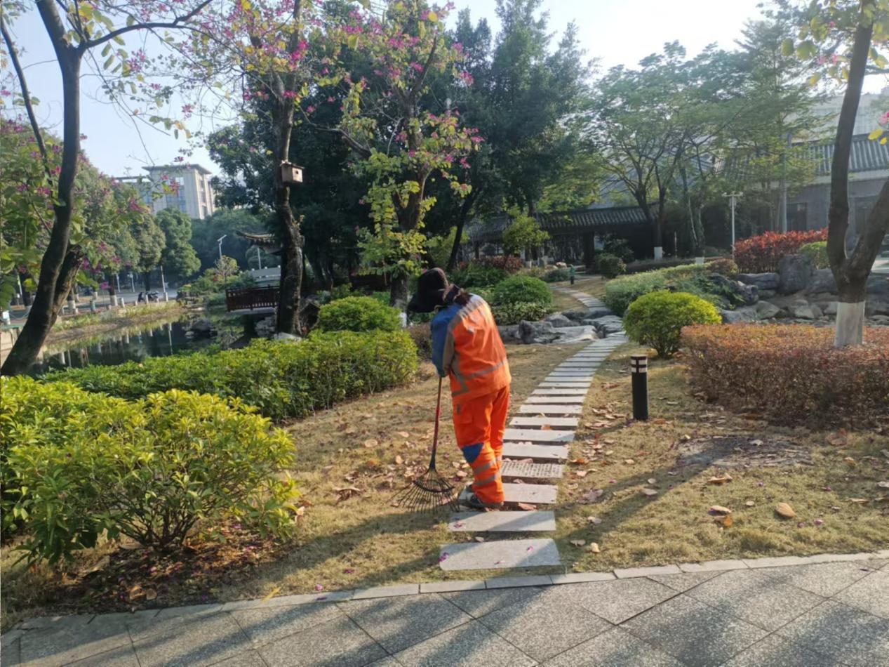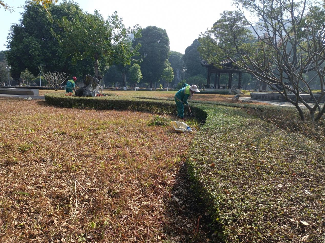 日常养护工作:学生公寓27、28栋、劝学岛、南大门、校办、紫荆湖、生科学院、资环材大楼周边、物理学院、六教、东校园中区3栋、土木工程实验平台工材基地、西门、北校园、西校园西区10栋、汇学堂、数信学院、碧云湖友谊园、经济学院、新东园、荟贤桥边坡、碧云路、大学生中心等区域拔杂草、绿地树木病虫害防治、绿地及行道树木淋水,松土修边、草坪修剪、绿篱修剪、绿地清理落叶等其他绿化养护作业。
