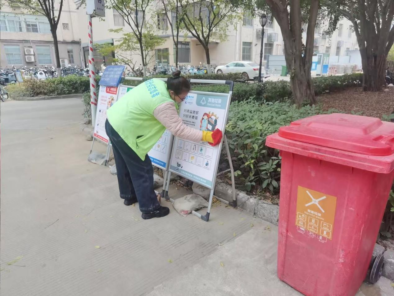 垃圾分类督导:按计划进行垃圾分类督导和宣传、垃圾分类宣传展板清洁和宣传单派发等工作,对校园进行全面巡查,及时处理发现的问题。