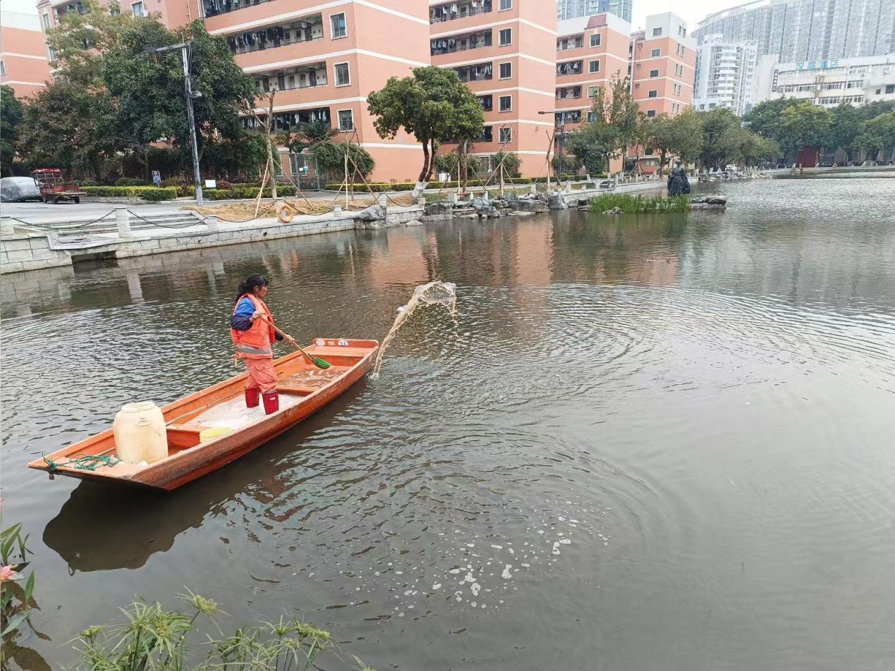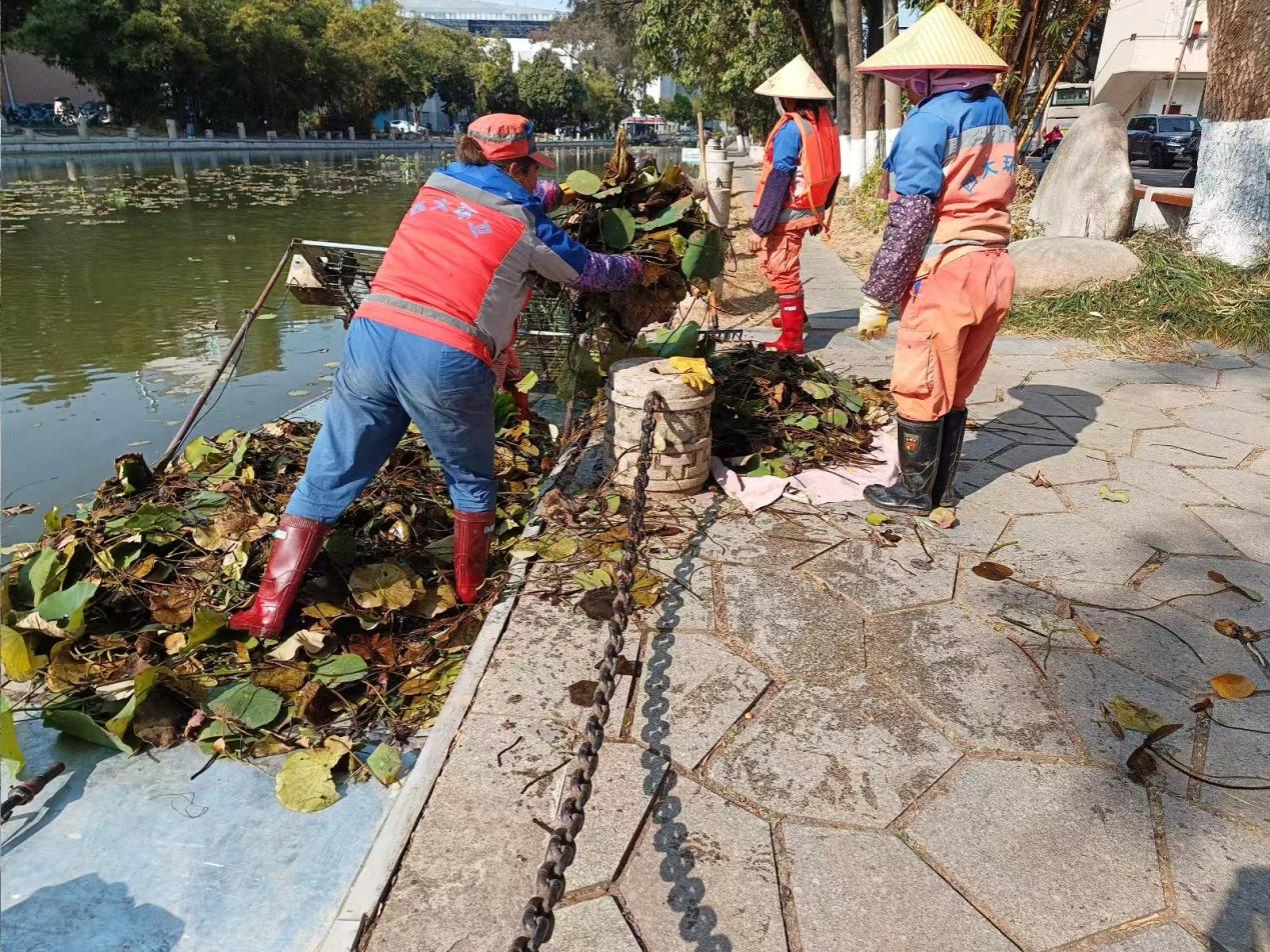湖泊运维员每日进行湖面保洁、清理湖面油膜垃圾,保持水面干净整洁;本周继续对镜湖、鉴湖、翠湖、荷湖、莲湖、爱莲湖、彩蝶湖、大碧云湖、紫荆湖等湖泊驳岸花带修剪、清理枯荷叶、修剪睡莲等养护工作;对鉴湖、翠湖、春华湖、秋实湖、彩蝶湖、大碧云湖进行打捞青苔;大碧云湖、彩蝶湖等进行治理青苔;对月牙湖、莲湖进行水质调理、对西校园假山水池进行补水;对紫荆湖中段的4处漏水点用水泥修补。