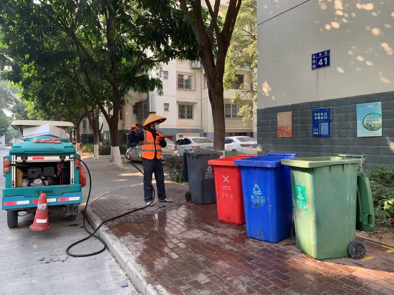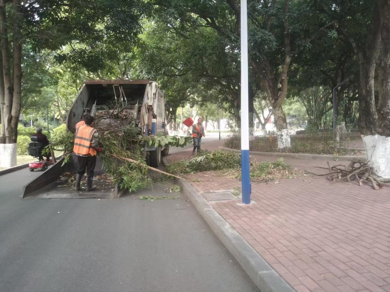 垃圾清运:按规定时间路线清运校园垃圾,做到垃圾日产日清,并对垃圾桶和垃圾箱进行清洗和消杀。本周清运生活垃圾435.7吨,大件垃圾12.6吨,绿化垃圾约为249立方米。