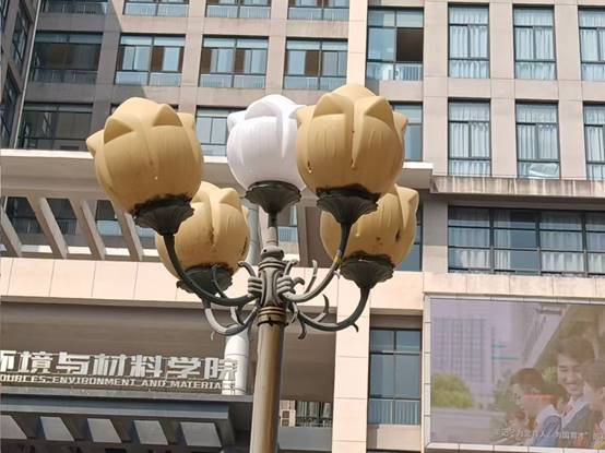 资环材学院门口路灯灯罩脱落修复后