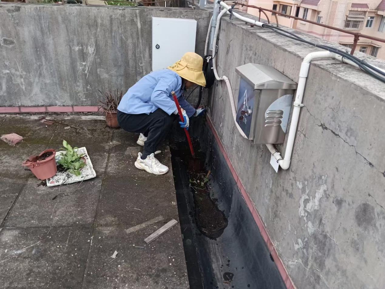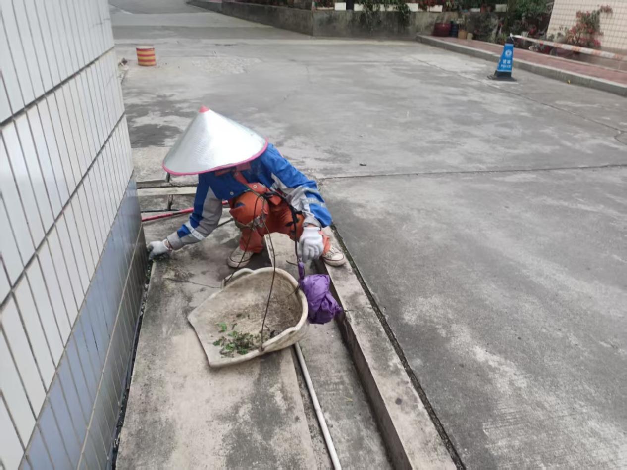 公共区域维修板块继续做好校内公共区域地面、路沿石、路灯、水沟盖板、健身器材等设施排查、维修、抢修工作;及时对校内雨篦子、井盖、管道等排水系统进行排查、疏通。本周对校内公共区域道路路面、路灯、盖板等维修共58处,排水口疏通25次。