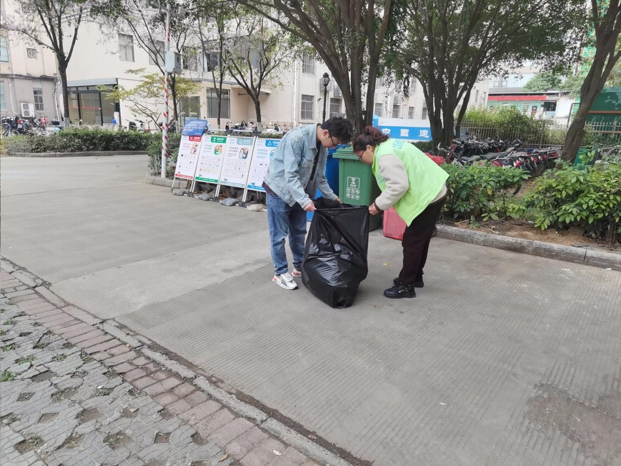 垃圾分类督导:按计划进行垃圾分类督导和宣传、垃圾分类宣传展板清洁和宣传单派发等工作,对校园进行全面巡查,及时处理发现的问题。