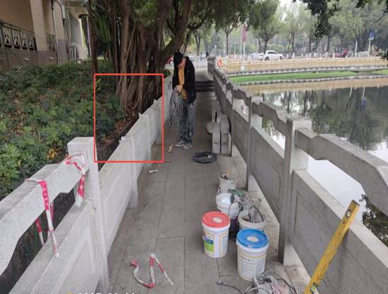 翠湖栏杆破损修复后