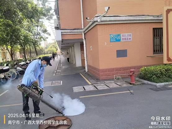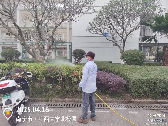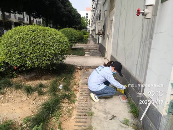 为保持良好的校园卫生环境,病媒生物防制板块于4月16日—4月30日对全校教学办公区、教职工住宅区、学生公寓区外环境实施灭鼠杀虫、白蚁、红火蚁等病媒生物防制工作。防制范围包括所有的教学楼、办公楼、教职工住宅楼、食堂、农贸市场、医院、科研基地、仓库等外环境以及校园的主次干道的下水道口、公厕、垃圾桶(箱)、绿化带、雨水沟等,实际有害生物防制面积约136万㎡。其中绿地约34万㎡,下水道、化粪池及各类地井约3500个、小型污积水体约1万㎡,防制的主要内容包括对上述区域外环境的鼠、蚊、蝇、蟑螂等病媒生物及红火蚁、白蚁进行有效防制。