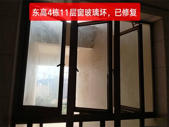 东高4栋11层窗户玻璃破裂修复后