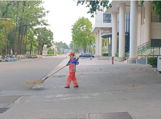 本周环卫保洁人员继续做好校园各区域环境卫生清扫保洁工作,每日清晨五点半开始采用“人机结合”的方式清扫校园的各大校道及支道,日常及时清理绿地枯枝落叶和白色垃圾,清洗铜像、果皮箱、清理水沟、雨篦子等,保持校园环境干净整洁。环卫保洁总面积近80万㎡,人均保洁6800㎡。