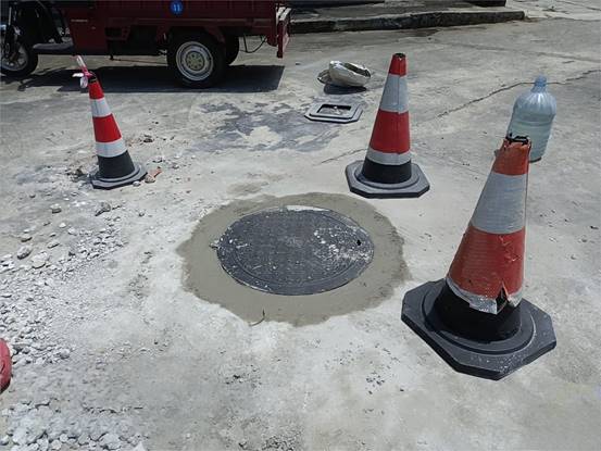 机械学院教学示范中心前井盖变形损坏修复后