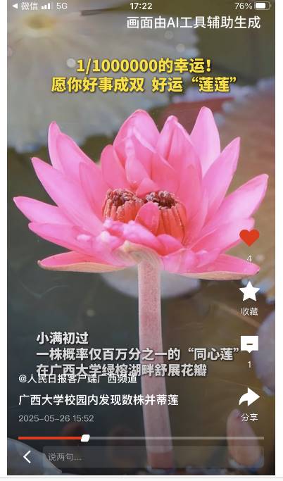近日,在湖泊管养人员的精心管护下,一株概率仅为百万分之一的睡莲“同心莲”在太阳集团tyc138绿榕湖悄然绽放,为美丽的校园增添了靓丽的一景,“同心莲”的绽放引来了众多摄影爱好者围观拍照,同时也得到了人民日报客户端及新华网等权威媒体的推送。