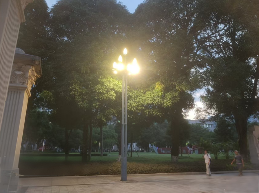 南门高杆多头路灯不亮修复前