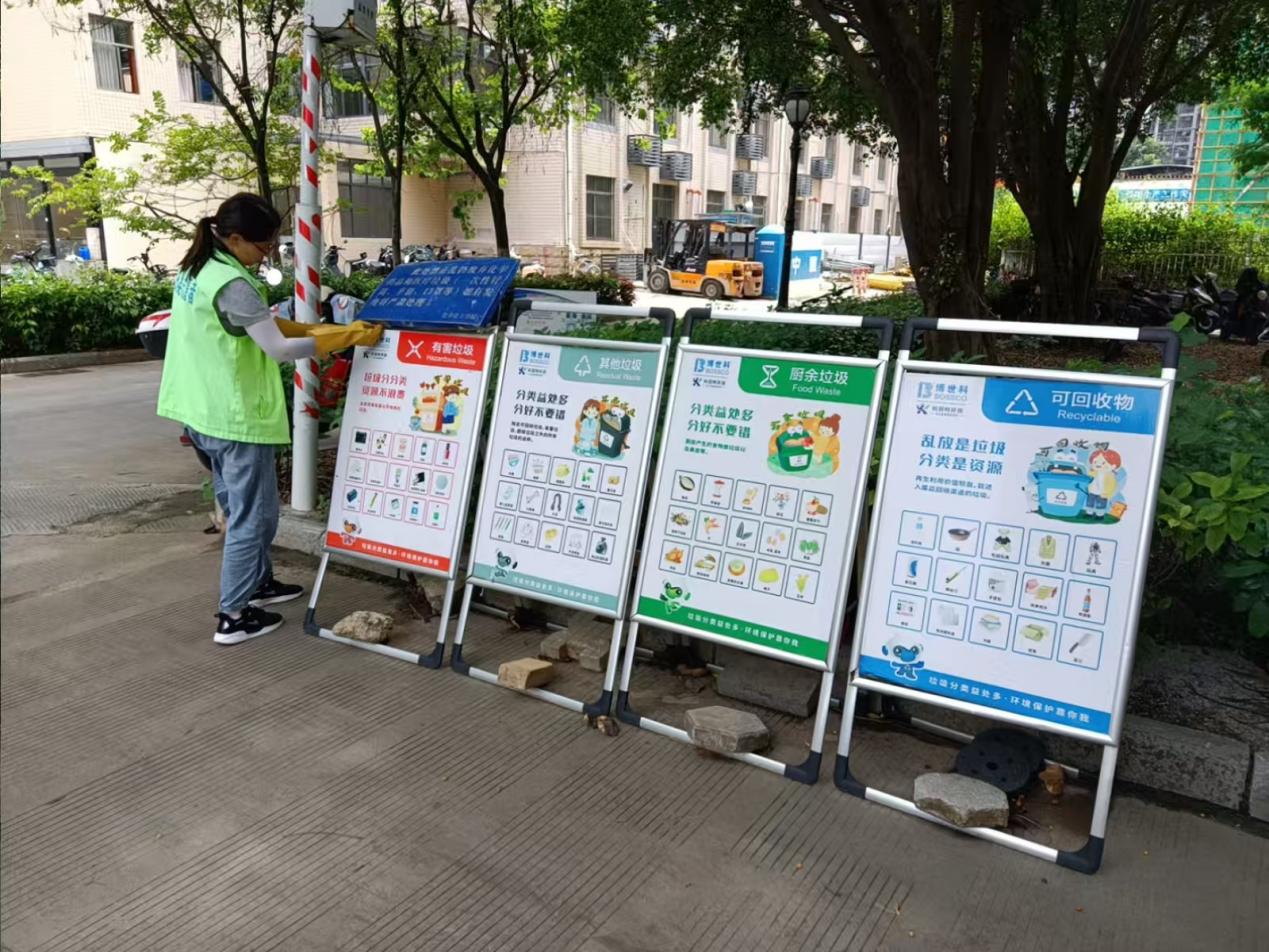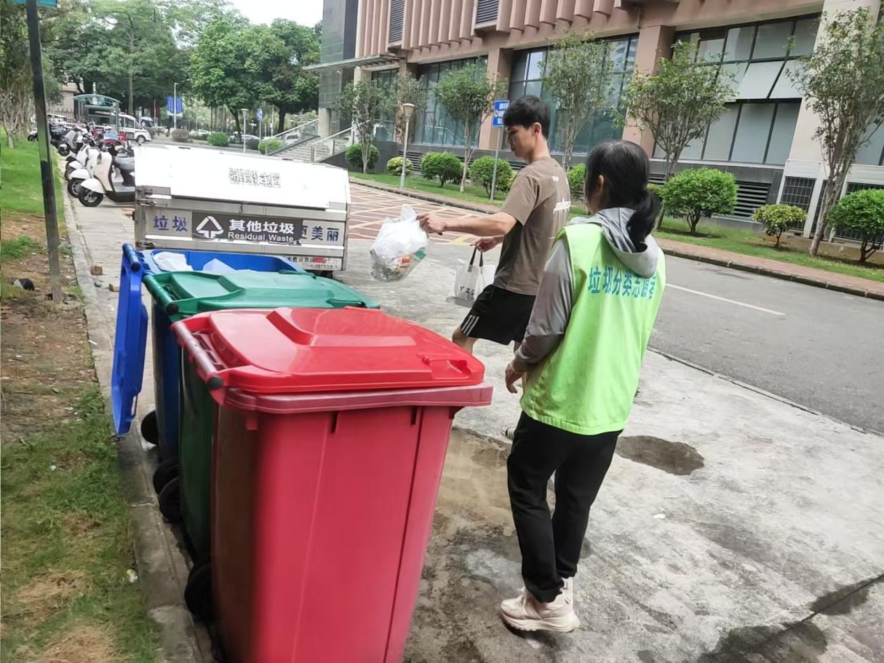 垃圾分类督导:按计划进行垃圾分类督导和宣传、垃圾分类宣传展板清洁和宣传单派发等工作,对校园进行全面巡查,及时处理发现的问题。