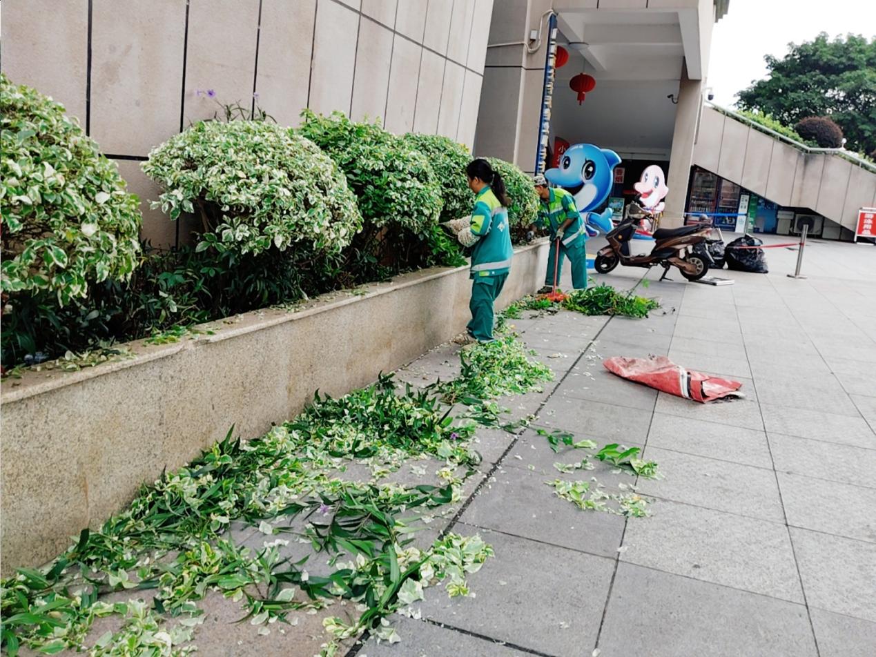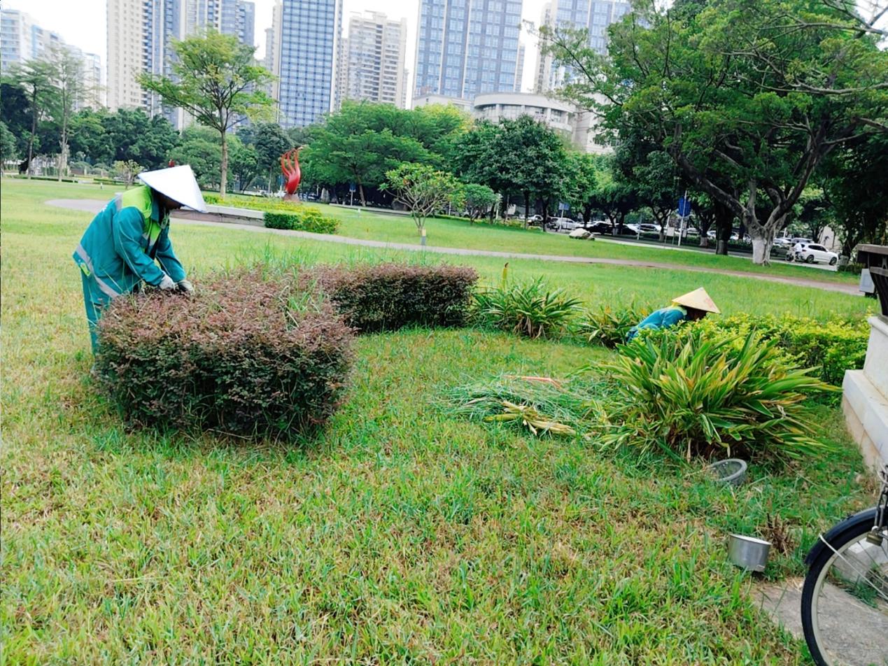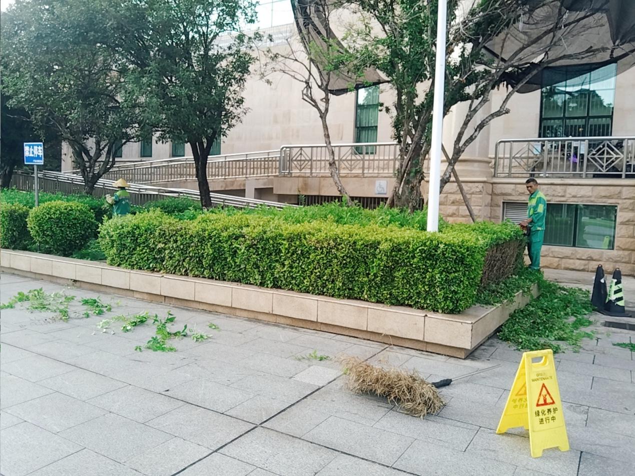 育才广场杂草清理