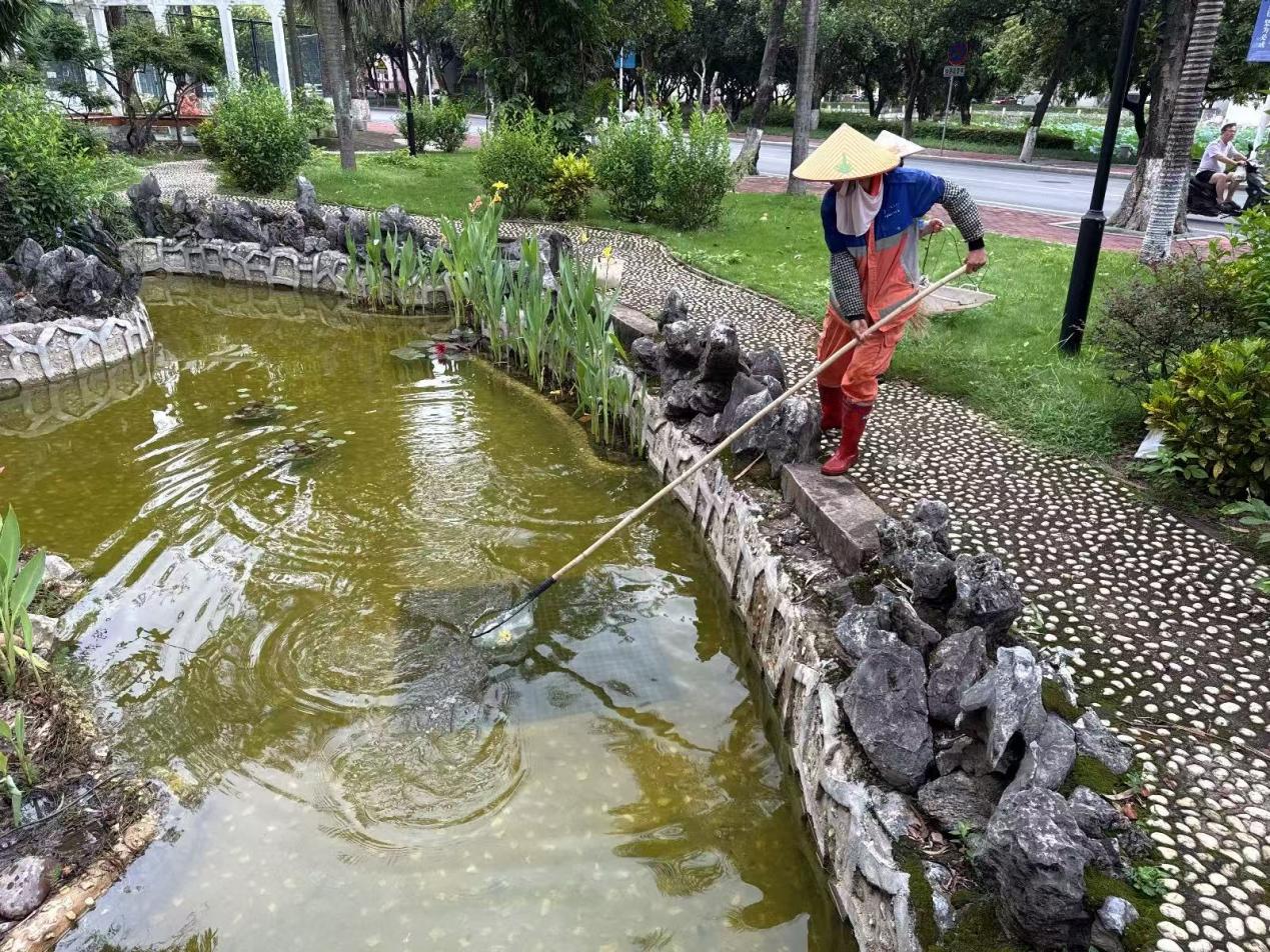 西校园假山水池保洁