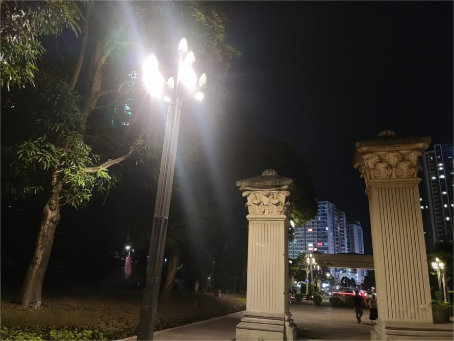 南门高杆多头路灯不亮修复后