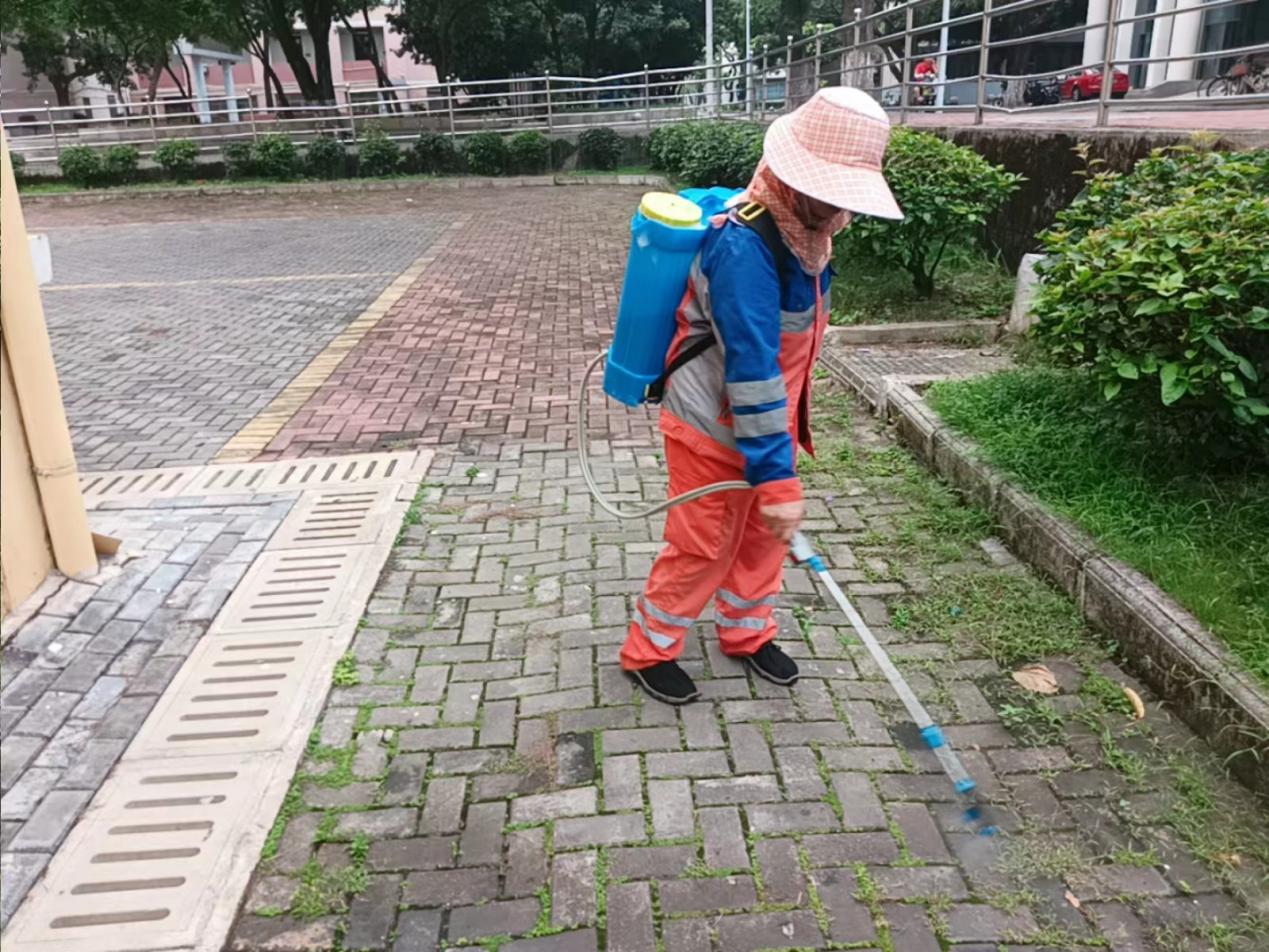 校友办周边地砖喷除草剂