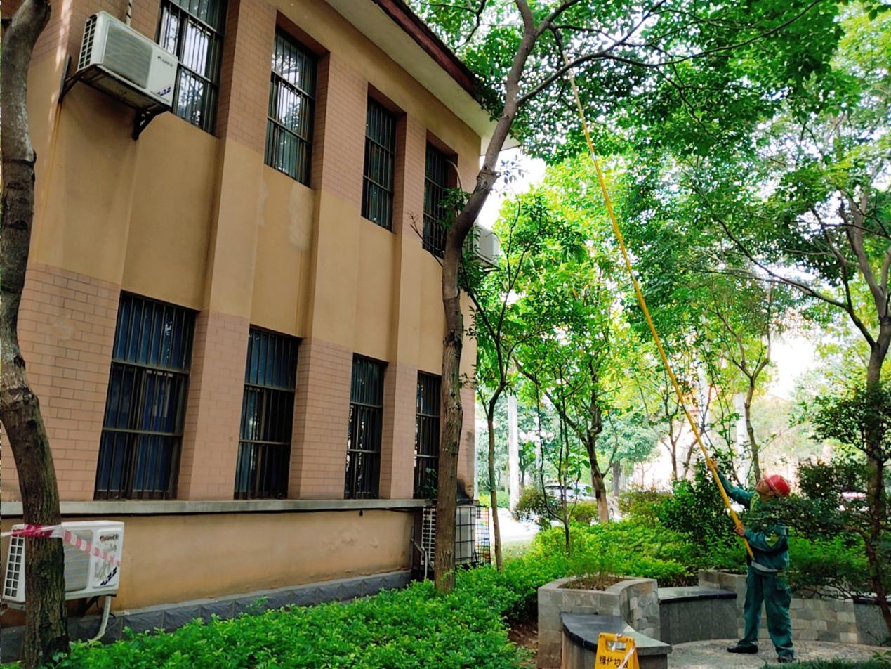外国语学院修剪靠近房屋树枝