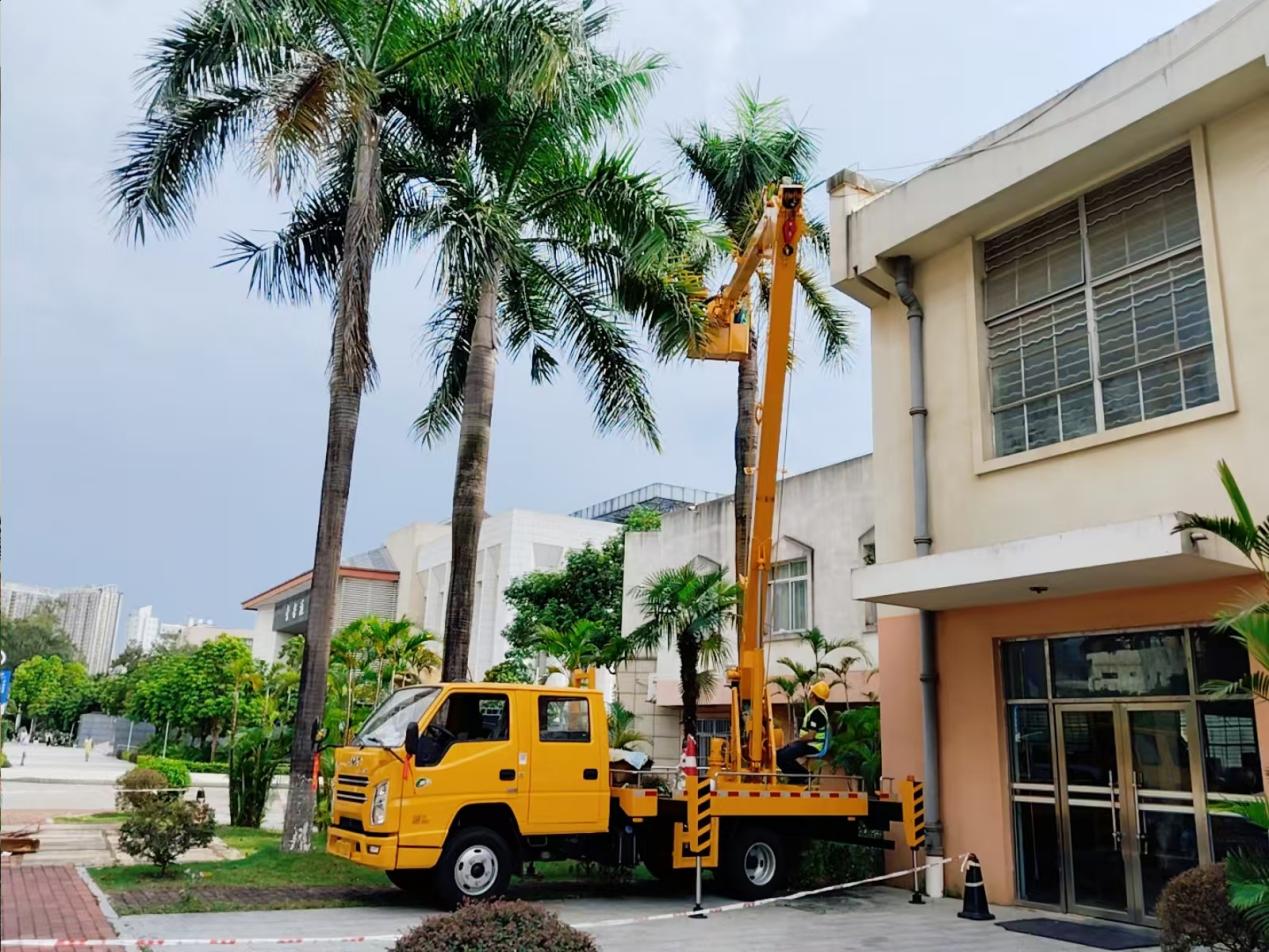 体育学院东面修剪大王椰枯叶