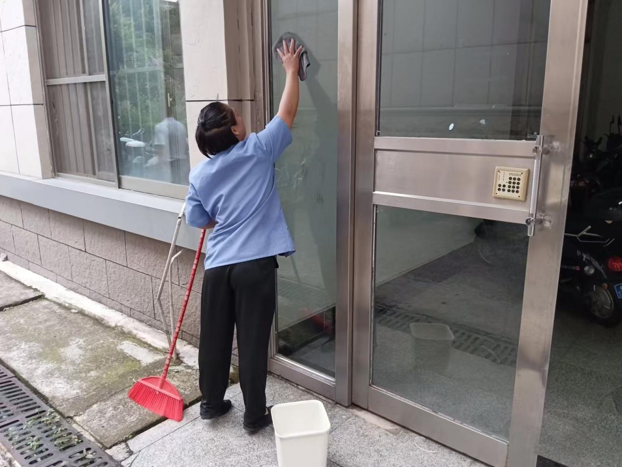 教师公寓擦拭玻璃门