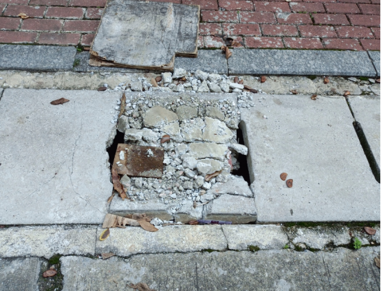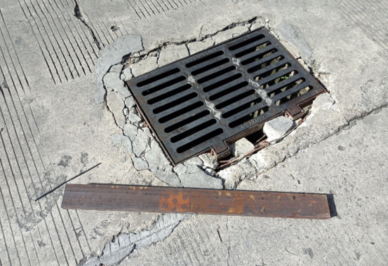 东高出入口雨篦子基座破损修复前
