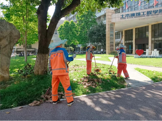 土木建筑工程学院绿地清理落叶