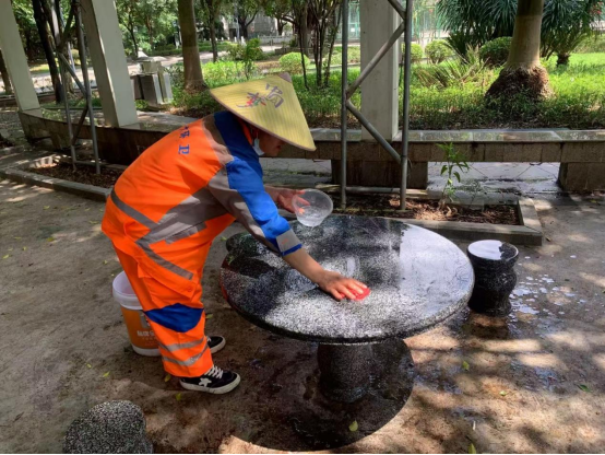 北校园地洞口旁清洗凉亭桌椅