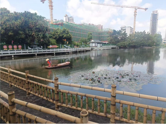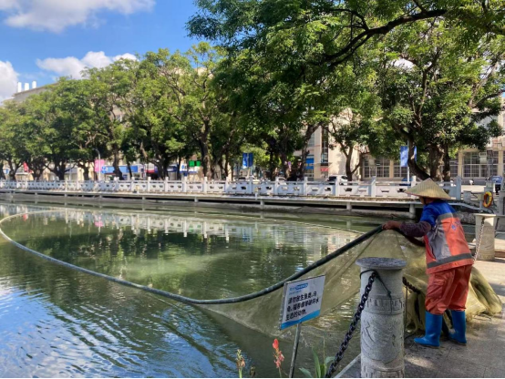暑期控鱼总计打捞195斤杂鱼;各湖驳岸治理福寿螺及清理螺蛋,打捞福寿螺及螺蛋总计170斤;16个景观湖4个景观池总计清运垃圾94吨;水草修剪面积约23000㎡;水草补种面积约8000㎡;检查更换老旧标识牌13处,更换老化救生圈2个。
