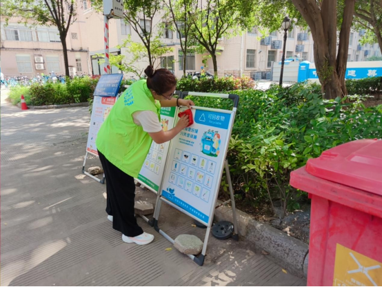 垃圾分类督导:按计划进行垃圾分类督导和宣传、垃圾分类宣传展板清洁和宣传单派发等工作,对校园进行全面巡查,及时处理发现的问题。