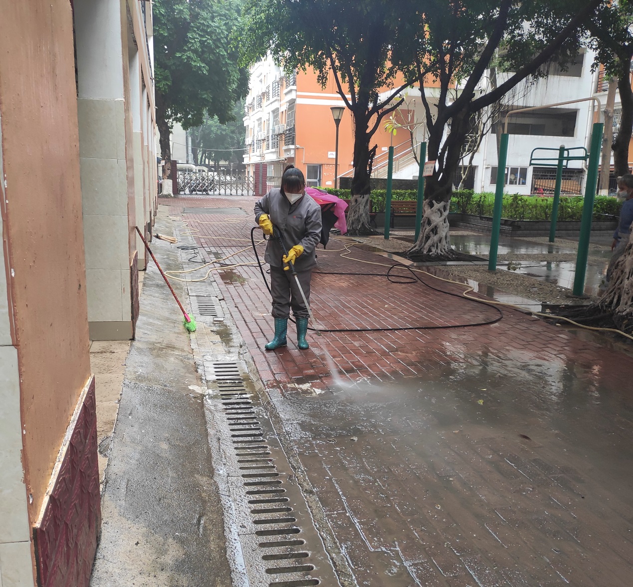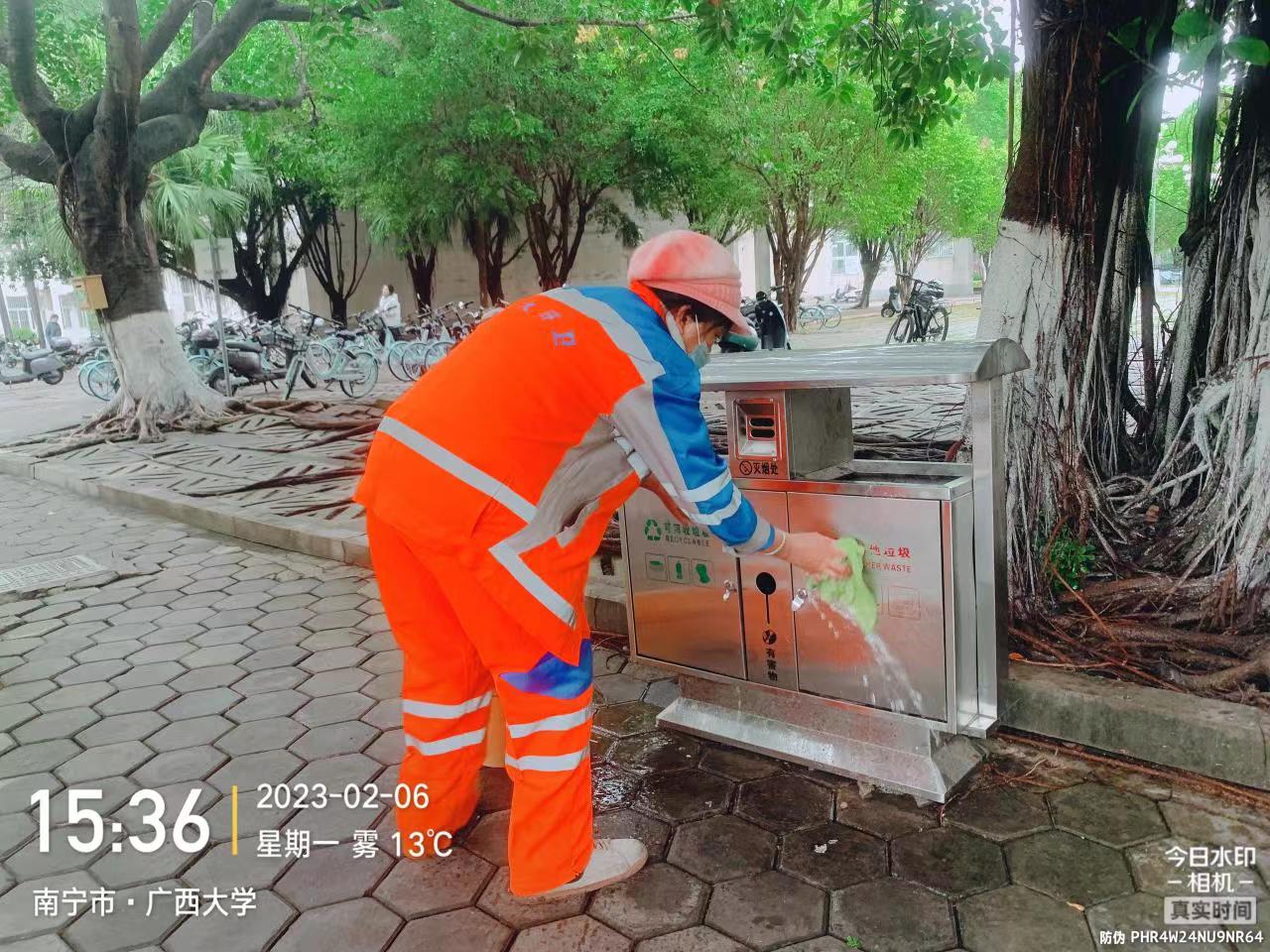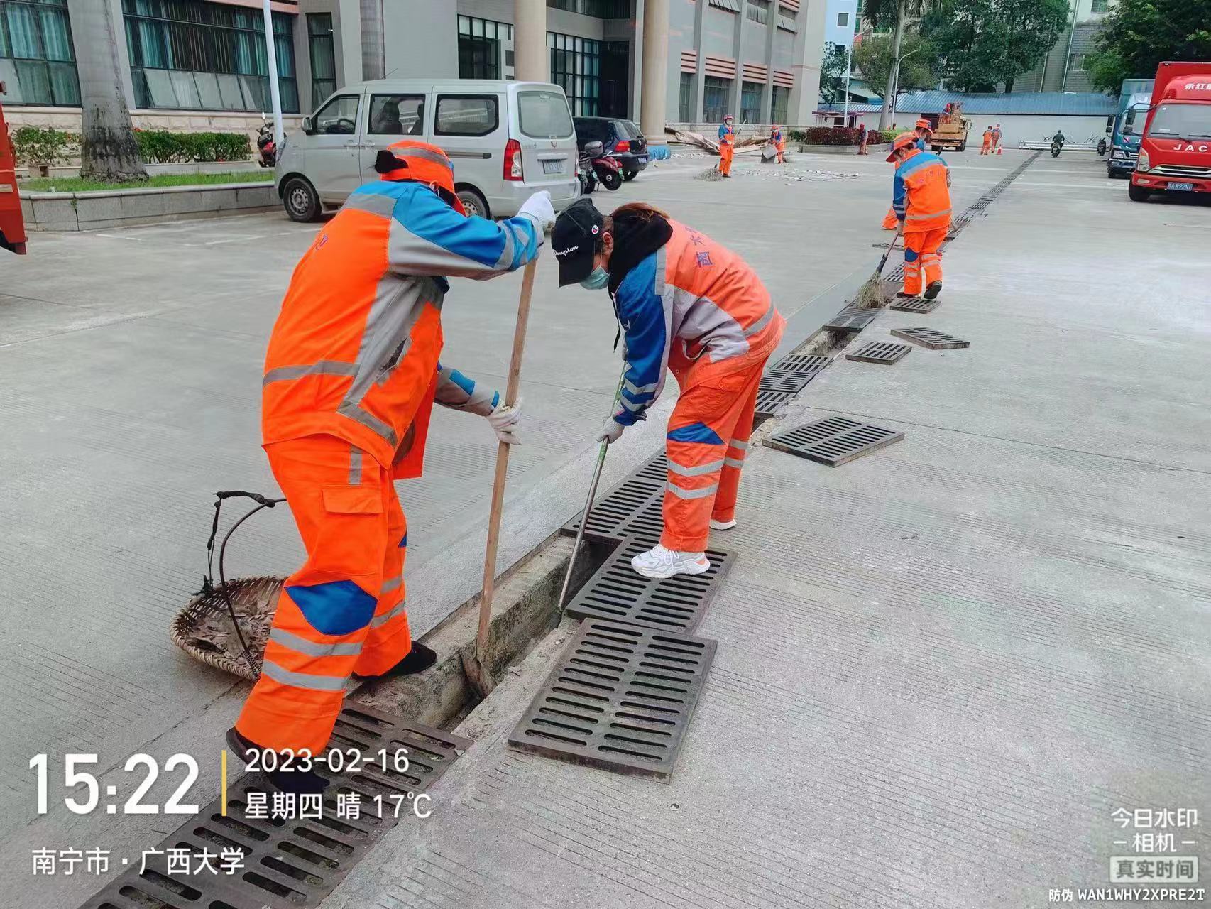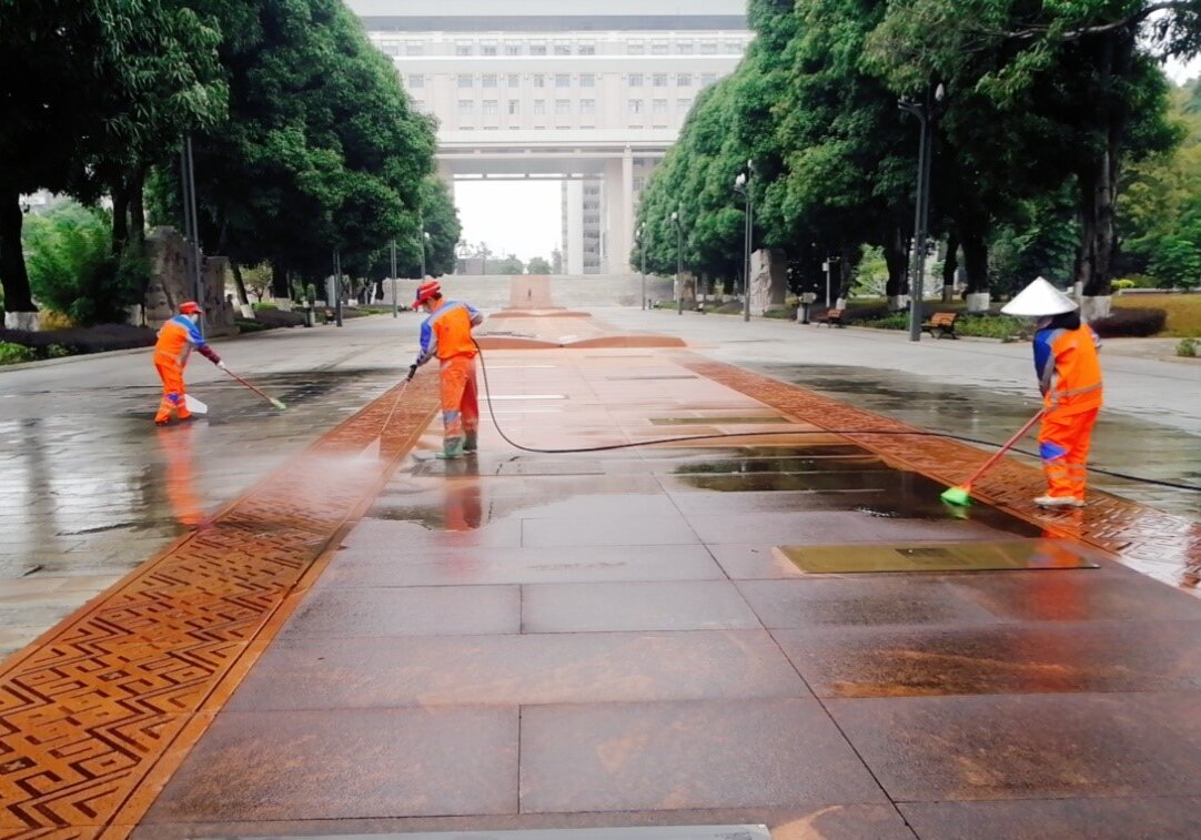 五是认真做好校园环境服务保障工作。对学校各大门、公共区域道路、教学区域、湖泊、教工住宅区及地下室、垃圾清运点等区域进行全面巡查,对校园环卫保洁、绿化修剪、垃圾清运、湖泊管养、教工住宅物业、生物病媒防制等物业工作进行指导及安全隐患排查。开学期间,公共区域道路清扫保洁面积80多万平方米,清运开学季生活垃圾约268.5吨;维修公共区域损坏路面16处,维修路灯20处;病媒生物防制消杀室外绿化面积约30万平方米、下水道、化粪池约3500个、处理水体面积1万平方米;完成机械打草约2.3万平方米,绿篱修剪4002平方米,拔杂草约1.3万平方米,补植542平方米,清理枯叶3088平方米,淋水4432平方米,绿植喷药约6.6万平方米;各校大门防疫消杀累计3634平方米;完成228栋教职工住宅楼的日常保洁与消杀工作;维护16个景观湖和4个景观池,做好水域保洁和驳岸绿化维护,打造生态水系“净、奇、美”的特点。