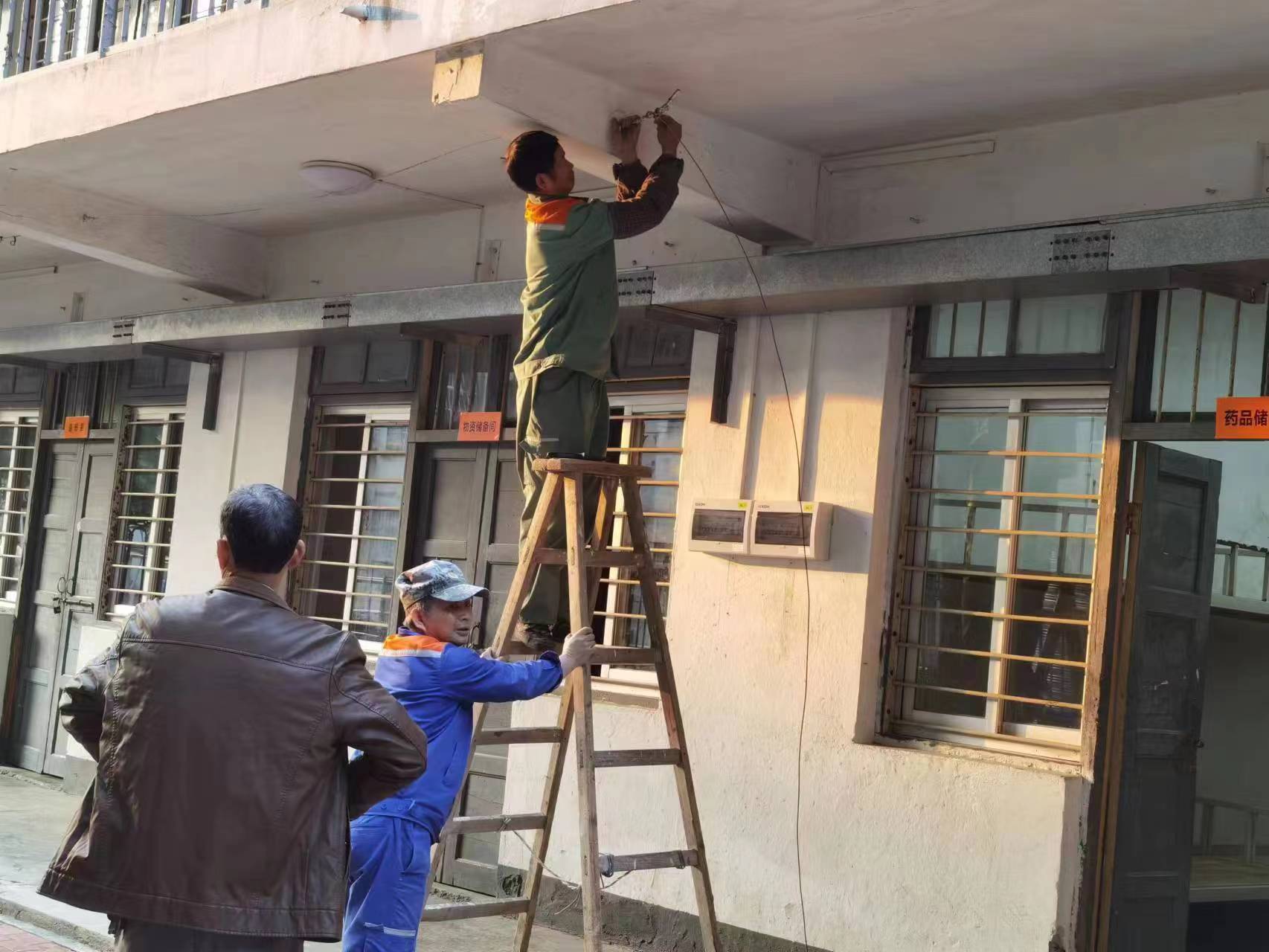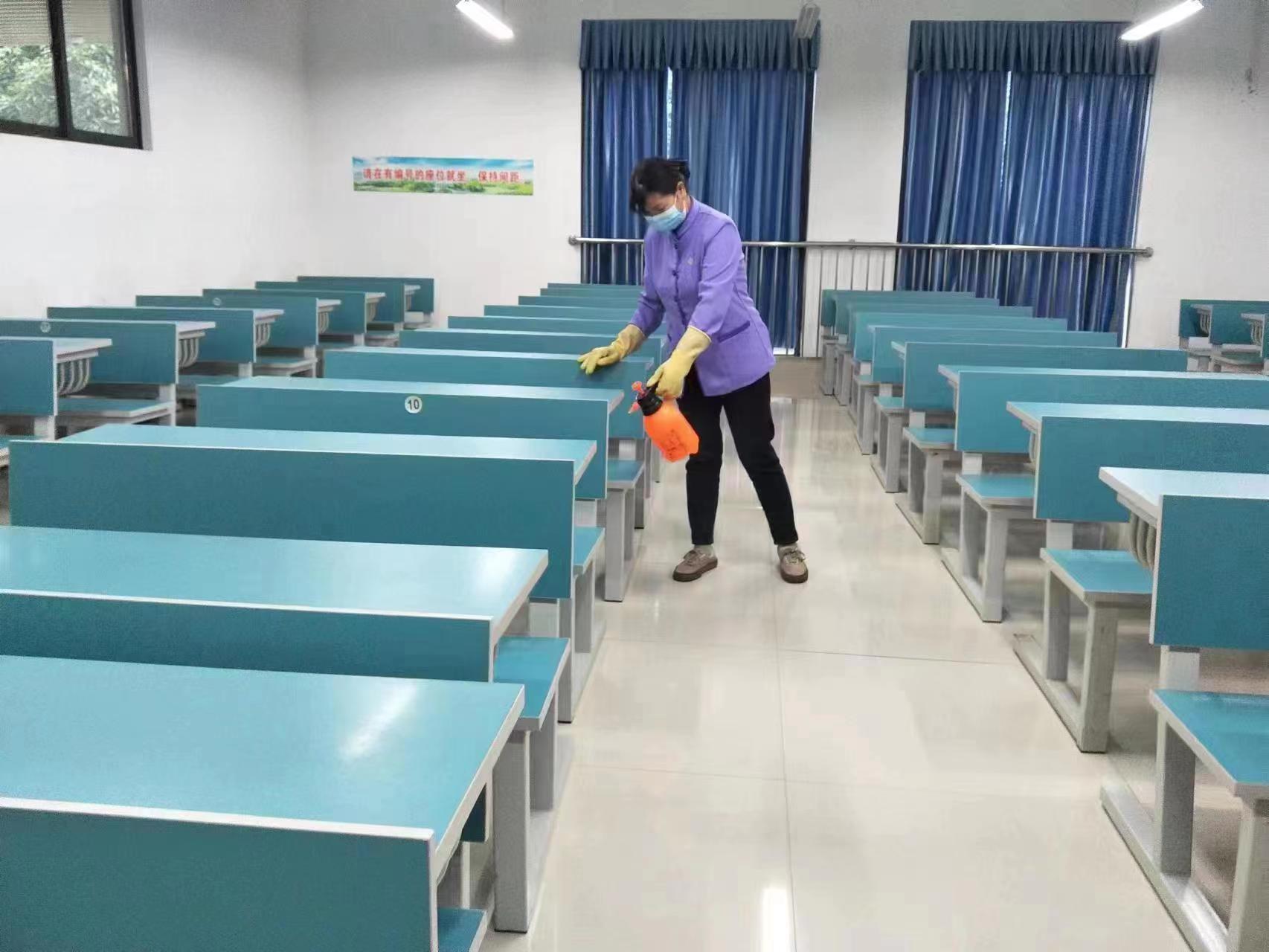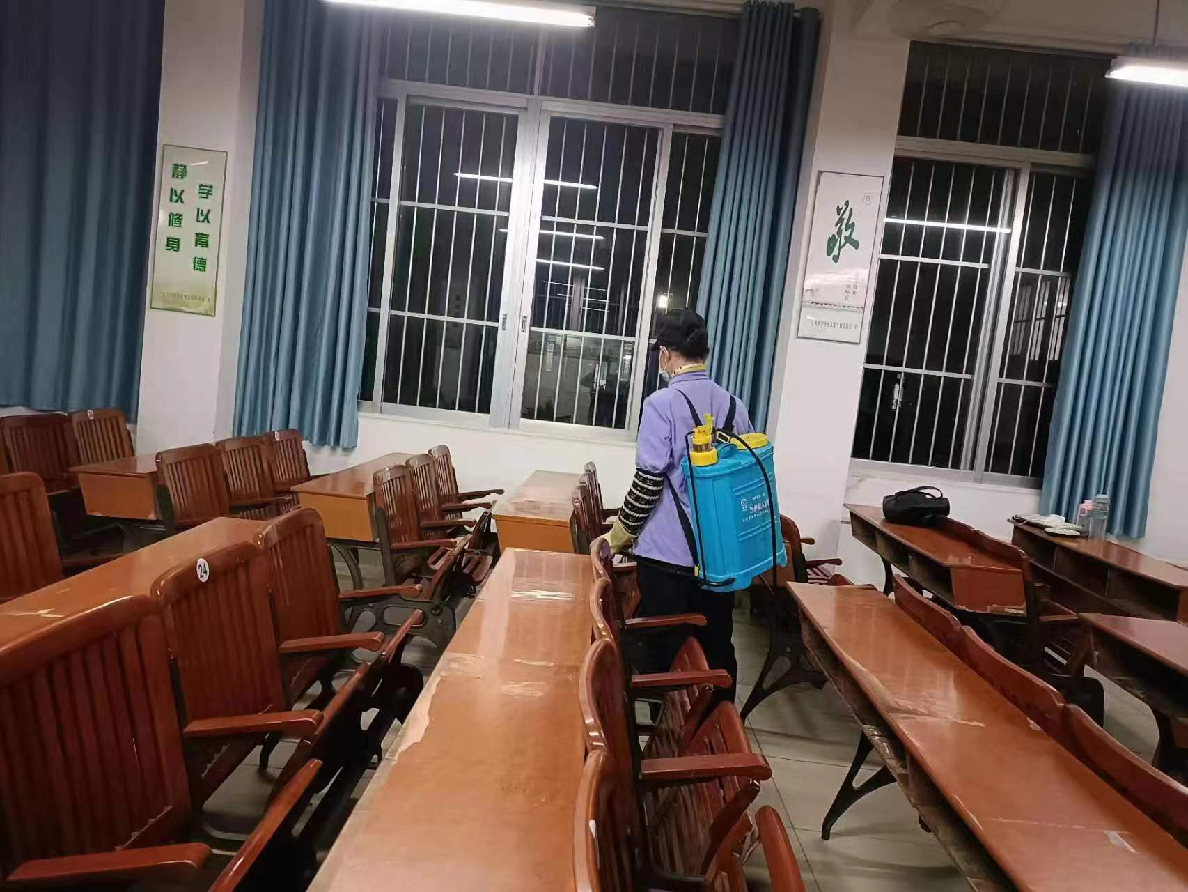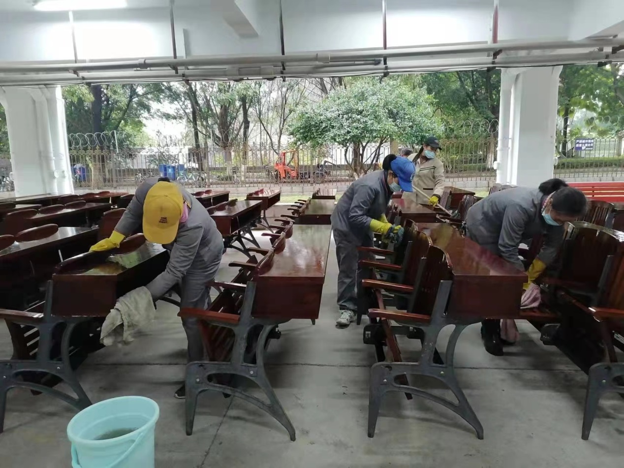 四是认真做好公共楼宇及教学楼服务保障工作。开学前组织工作人员对学校公共楼宇进行清洁工作,做好教室、走廊、卫生间等公共场所的卫生保洁和消毒保障工作,对全校公共教室多媒体设备进行调试检修,开展教学楼桌椅、多媒体设施设备、照明设备、墙面脱落等维修工作,打造干净整洁的教学环境和性能良好的设备实施条件。