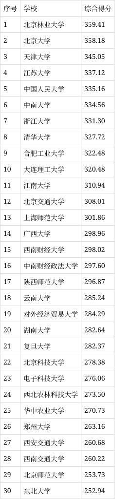 百所高校后勤服务“动态竞争力指数”综合得分(前30)