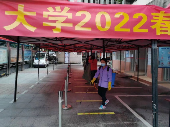 后勤管理处后勤服务管理岗联合博世科物业对各大校门公共区域过道及废弃口罩收集消杀,对校门出入口每天从7:30-24:00时不间断进行轮换消杀,并对全校教工住宅区228栋楼宇做好楼梯,把手,电梯,中转站,垃圾桶等处的消杀工作。