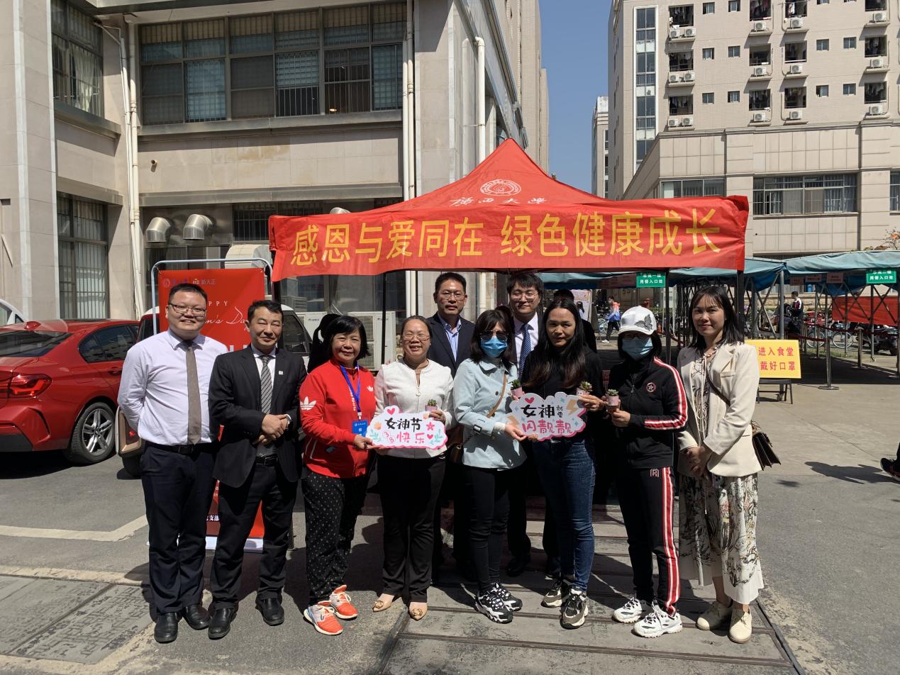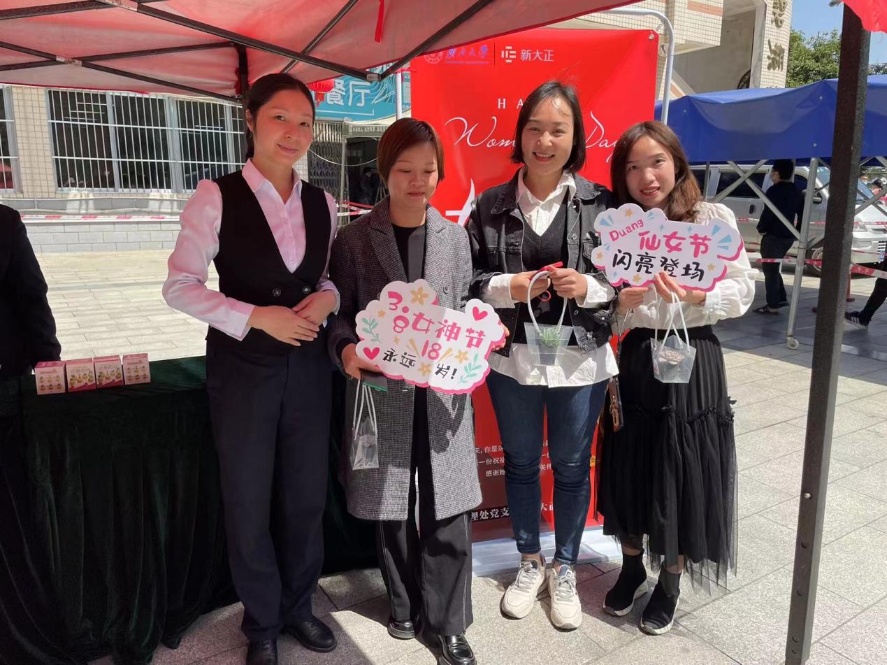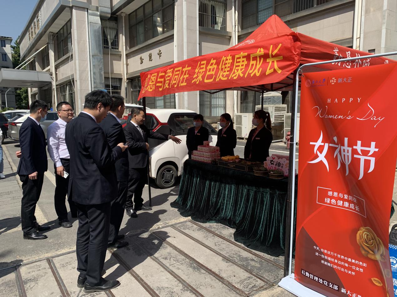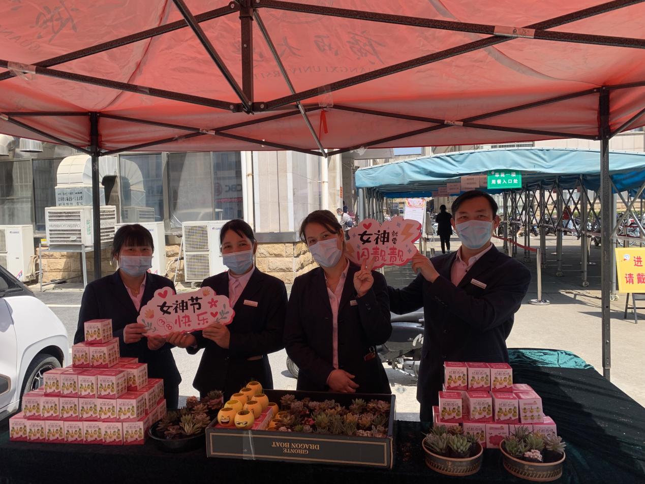 阳春三月,三八佳节,三月迎来了明媚的春光,也迎来了第112个国际妇女节,我国第99个妇女节。为倡导关爱女性,赞美女性,尊重女性的奉献和付出,同时也为了发扬光大尊师重教的优良传统,向辛勤培养学生的女园丁们表达深深的谢意和浓浓的祝福。2022年3月8日,后勤管理处党支部联合新大正物业公司,秉承“服务育人”“绿色环保”的理念,将三八节与植树节结合,开展以“感恩与爱同在,绿色健康成长”为主题的三八节活动,携手西大学子们一起为教职工送上节日祝福。