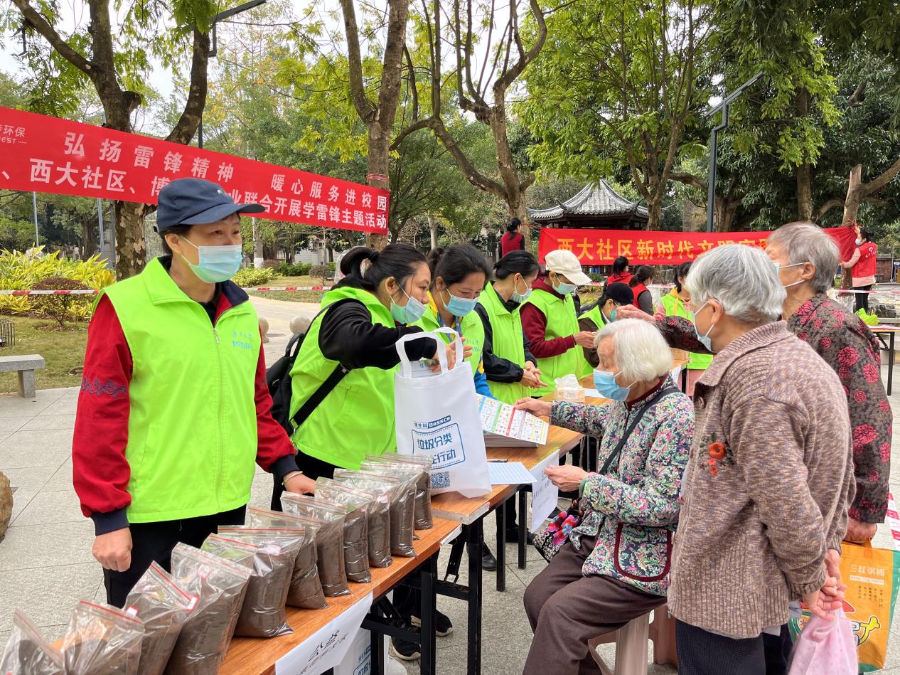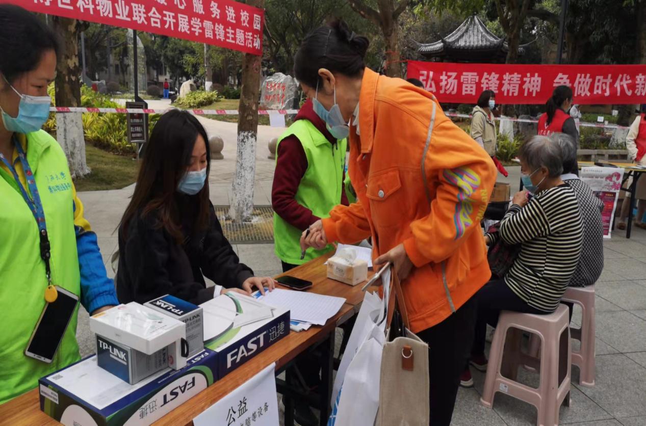 3月9日-11日,学雷锋公益活动现场在劝学岛西面广场如火如荼的进行,活动形式丰富多样,主要公益活动有:为广大师生及居民义诊牙齿、免费理发、免费检测手机电脑、免费清洗挂式空调滤网、无偿发放有机肥料及惠民特色服务——为85岁以上的独居老人免费上门检修水电服务等学雷锋公益活动,同时向广大师生和住户发放垃圾分类宣传单,普及垃圾分类知识。