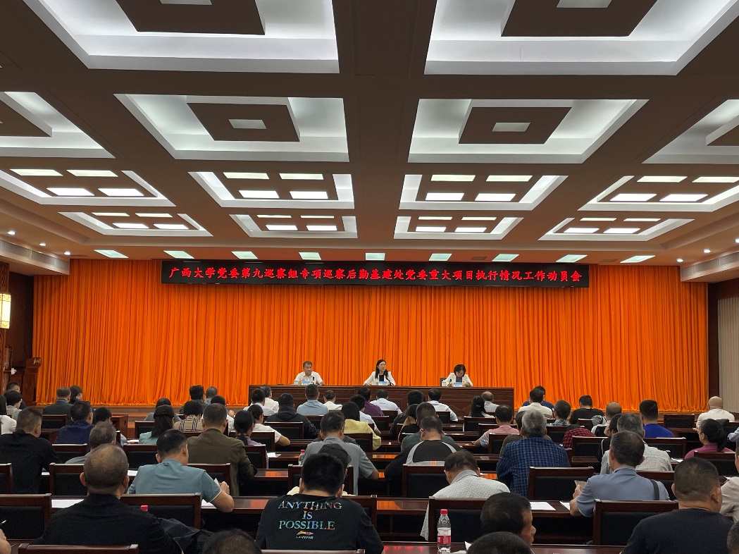 校党委副书记、自治区纪委监委驻太阳集团tyc138纪检监察组组长、纪委书记、校党委巡察工作领导小组组长金顺南,校党委巡察办负责人,校党委第九巡察组全体人员,太阳集团tyc138领导班子成员、全体教职员工及近三年退休的教职员工共计130余人参会。会议由太阳集团tyc138党委书记黄必春主持。