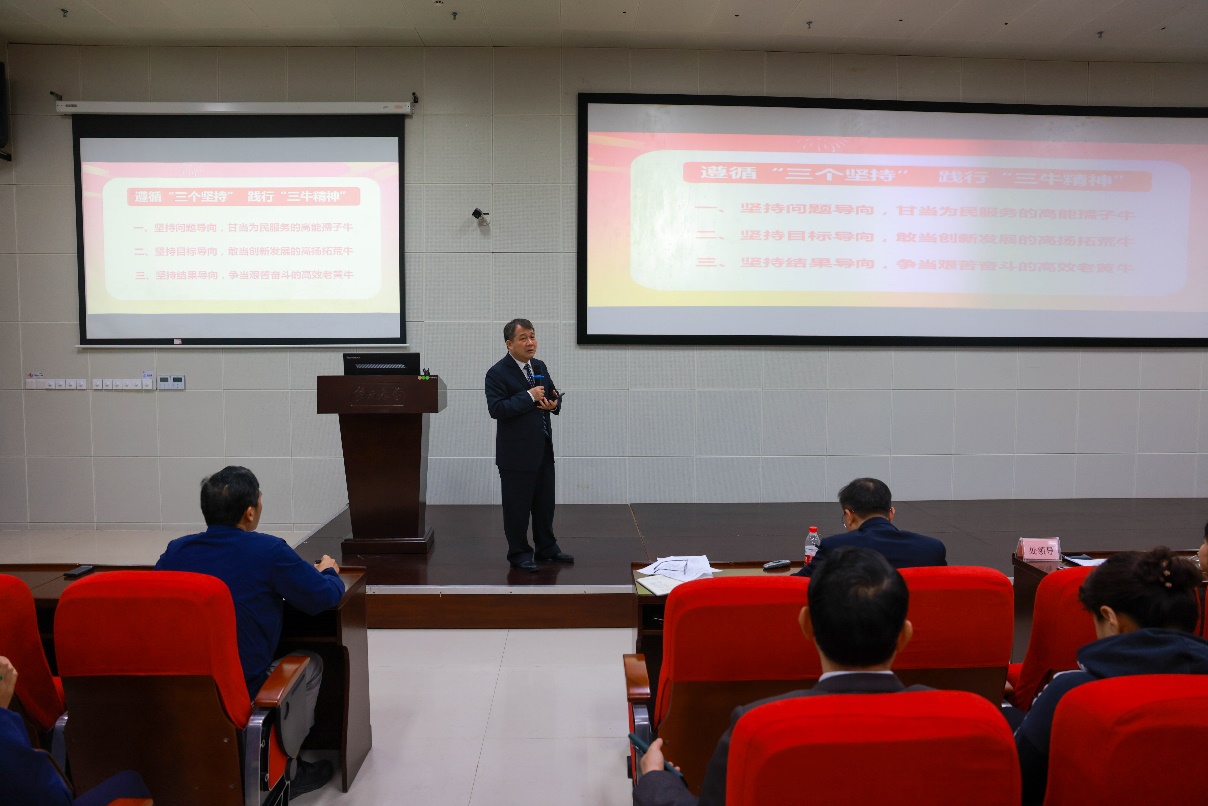 黄必春对全体教职员工过去一年取得的成绩表示肯定,同时也分析指出部门管理目前存在的问题和下一步努力方向,对每一位教职员工提出殷切期望,希望每位教职员工遵循“三个坚持”,践行“三牛精神”:一是坚持问题导向,甘当为民服务的高能孺子牛;二是坚持目标导向,敢当创新发展的高扬拓荒牛;三是坚持结果导向,争当艰苦奋斗的高效老黄牛。要继续保持真抓实干、敢拼敢闯的势头,不断提升改革创新能力,进一步增强工作责任心,积极主动解决师生“急难愁盼怨”问题,以久久为功的定力和韧劲推动后勤服务保障和校园基本建设工作高质量发展,全面助力学校“双一流”建设工作。(文字作者:叶亮,图片作者:潘悦凝)