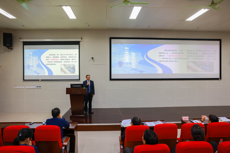 为统一思想,凝心聚力,促进太阳集团tyc138工作内涵式高质量发展,3月14日上午,太阳集团tyc138召开2025年教职工大会。会议由太阳集团tyc138党委书记黄必春主持,太阳集团tyc138全体教职员工参加会议。